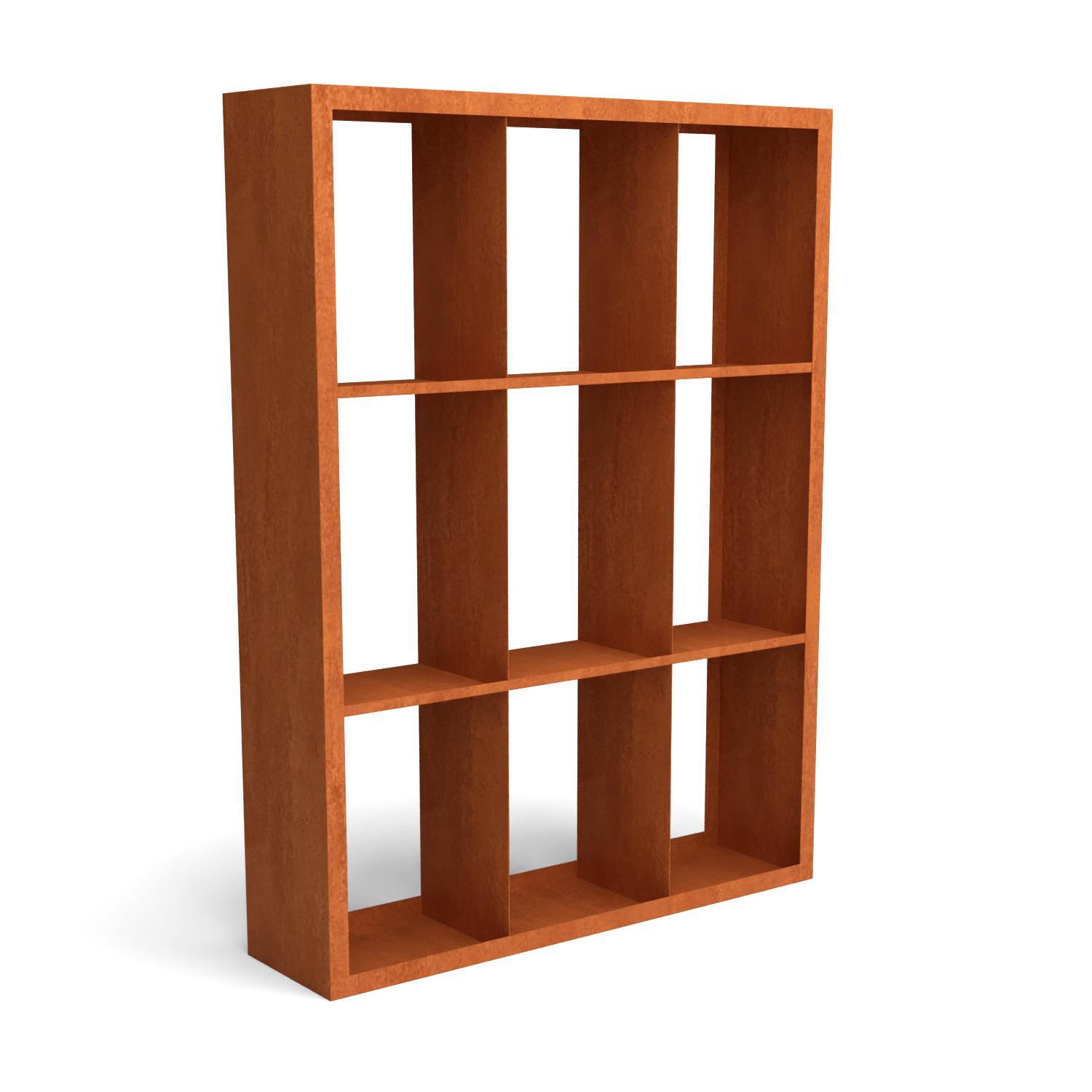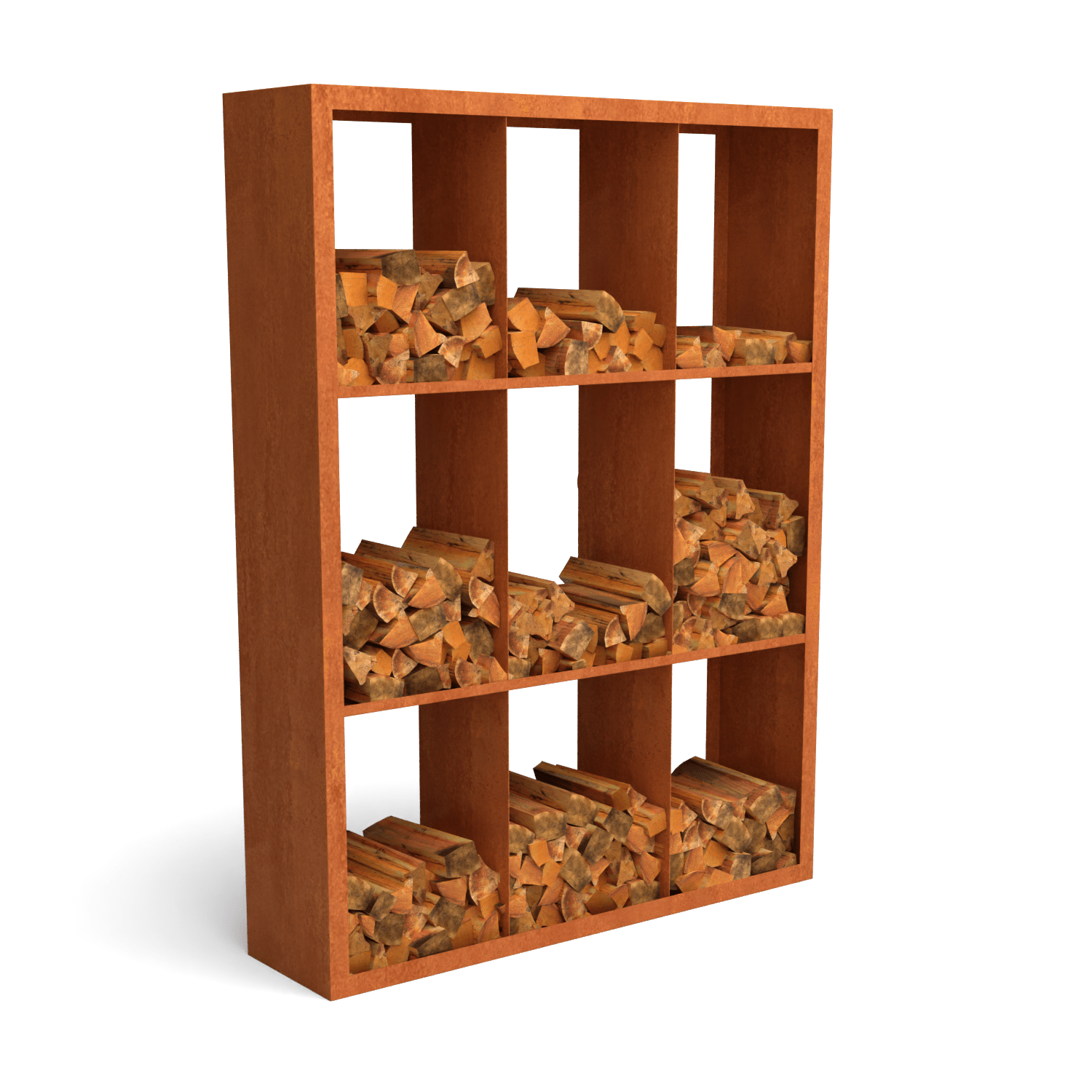 Egura Cortenstahl Holzlager – Unterteilung 9 Boxen – Länge: 1500 – Breite: 385 – Höhe: 2000