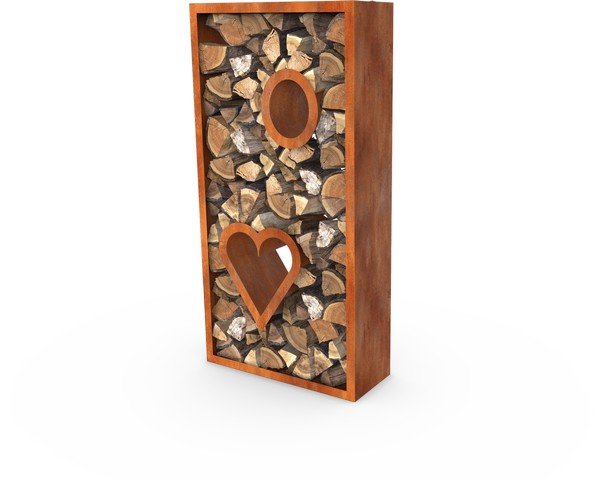 Egura Recess Holzaufbewahrung aus Cortenstahl – Herz – Länge: 600 – Breite: 540 – Höhe: 380
