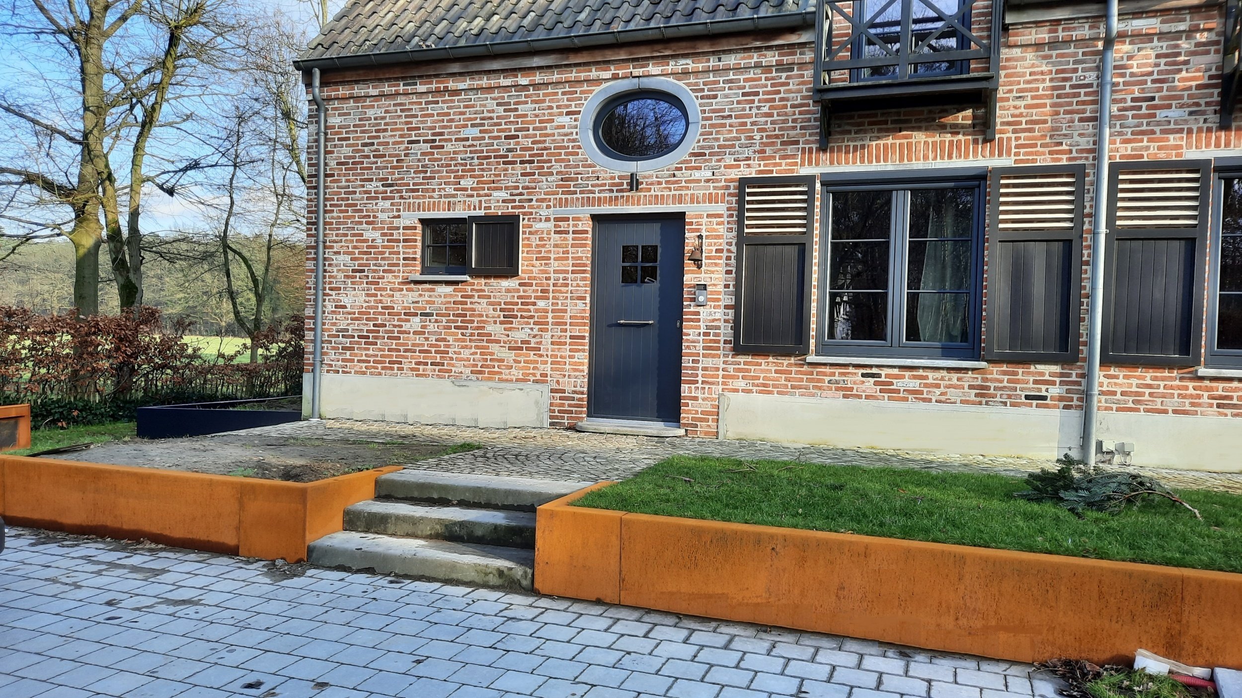 Gerade stück Stützwände aus Cortenstahl. 1000x200x750mm (LxBxH). Material: 2 mm Cortenstahl.