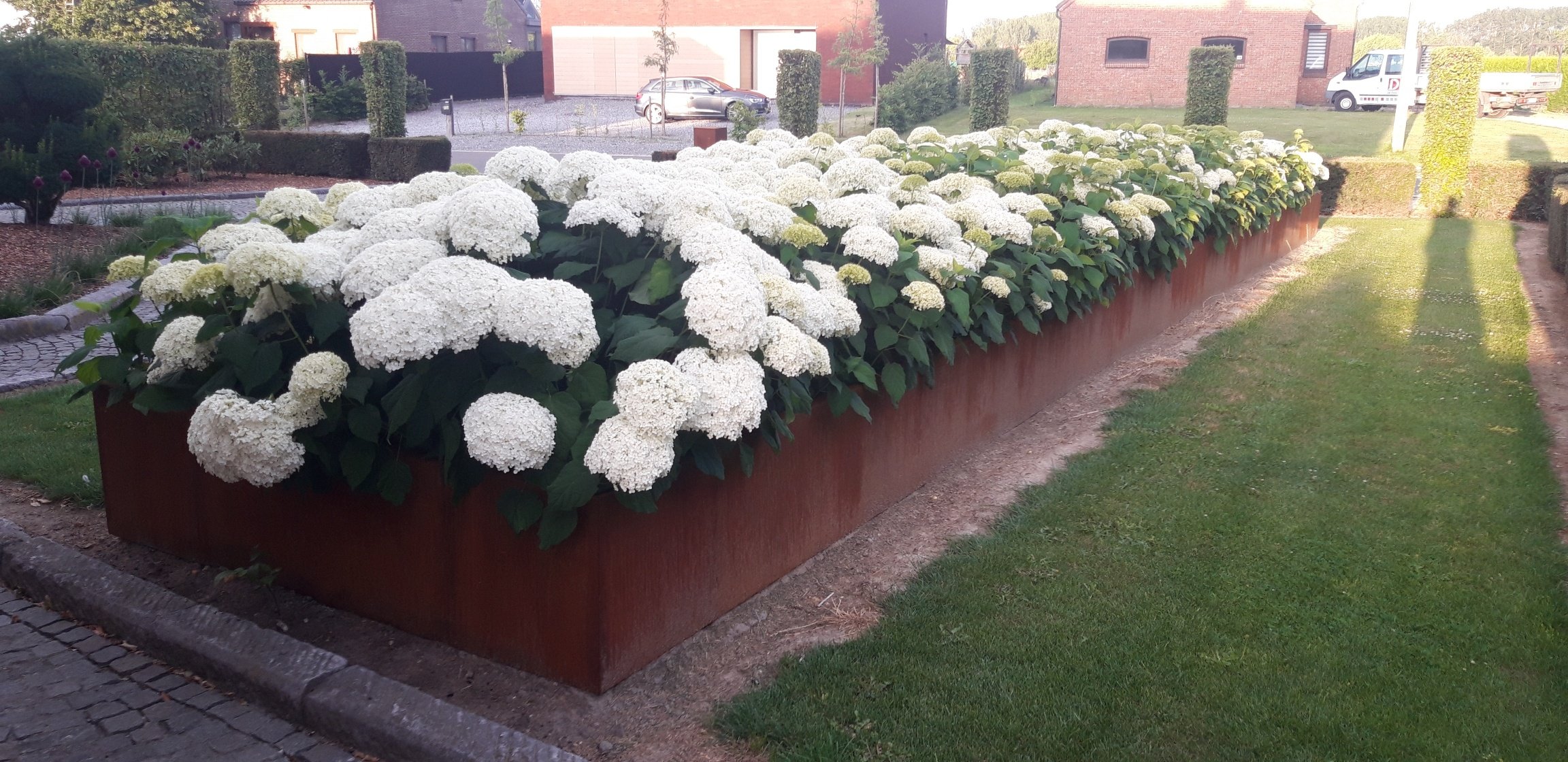 Gerda stück Stützwände aus Cortenstahl. 2000x200x500mm (LxBxH). Material: 2 mm Cortenstahl.